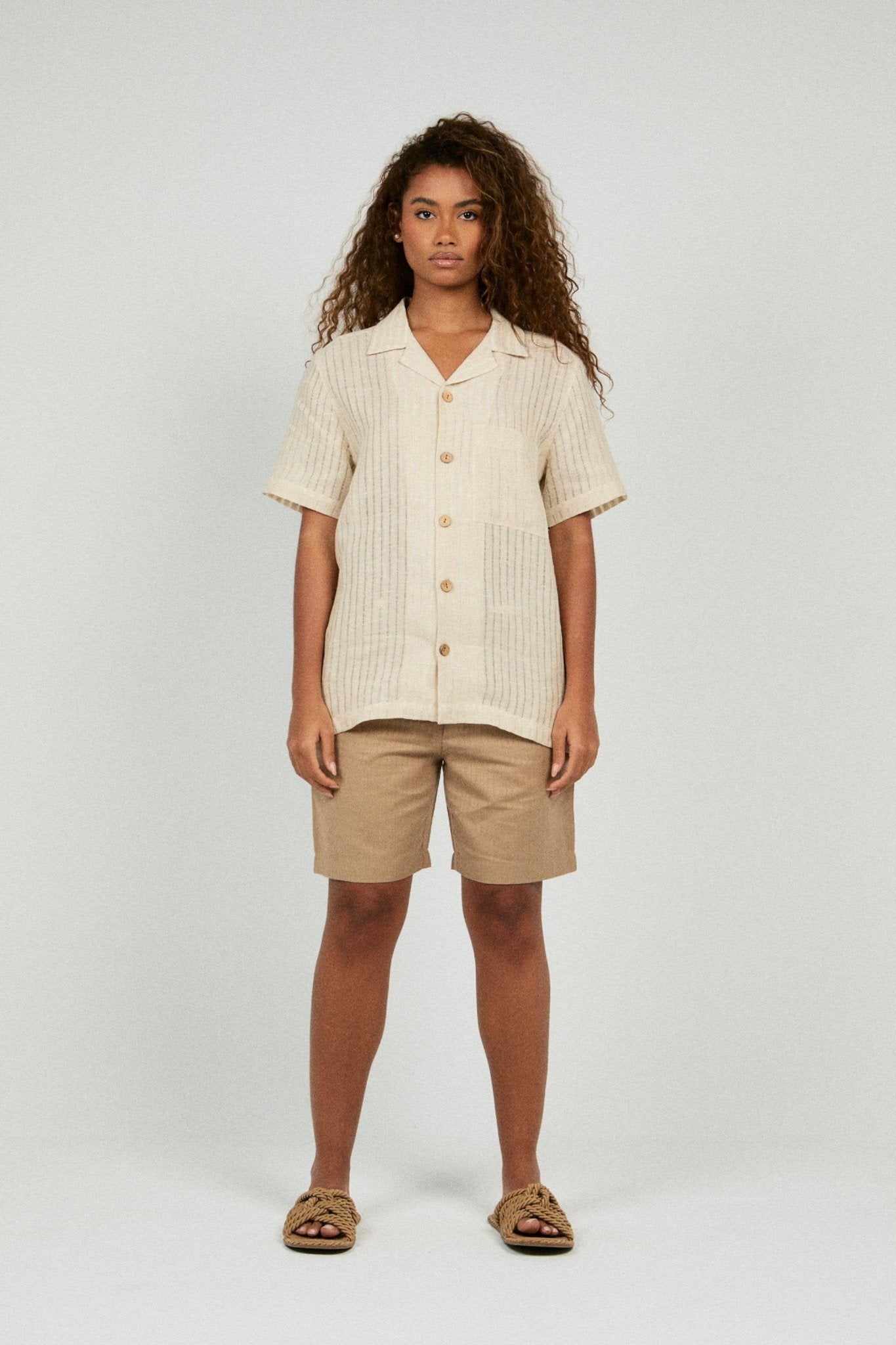 - Coconut Shell Buttons: Each shirt is adorned with eco-friendly coconut shell buttons, adding a natural touch that complements the linen fabric beautifully. These buttons not only enhance the shirt's aesthetic but also reflect a commitment to sustainability.